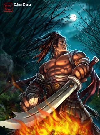 Đặng Dung dưới trăng mài gươm là một hình ảnh bi hùng trong lịch sử và thi ca (qua bài thơ Thuật Hoài nổi tiếng của ông) Tranh vẽ theo lối phối cảnh truyện tranh hiện đại.