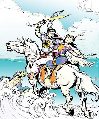 Lúc bấy giờ Triệu Đà làm chúa đất Nam Hải, mấy lần đem quân sang cướp đất Âu Lạc, nhưng vì An Dương Vương có nỏ thần, quân Nam Hải bị giết hại rất nhiều nên Đà đành cố thủ đợi chờ thời cơ. Triệu Đà thấy dùng binh không lợi, bèn xin giảng hòa với An Dương Vương, sai con trai là Trọng Thuỷ sang cầu thân, nhưng chủ ý là tìm cách phá chiếc nỏ thần. Trong những ngày đi lại để giả kết tình hoà hiếu, Trọng Thuỷ được gặp Mỵ Châu, con gái yêu của An Dương Vương, một thiếu nữ mày ngài, mắt phượng, nhan sắc tuyệt trần. Trọng Thuỷ đem lòng yêu dấu Mỵ Châu, Mỵ Châu dần dần cũng xiêu lòng. Hai người trở nên thân thiết, không còn chỗ nào trong Loa thành mà Mỵ Châu không dẫn người yêu đến xem. An Dương Vương không nghi kỵ gì cả. Thấy đôi trẻ thương yêu nhau, vua liền gả Mỵ Châu cho Trọng Thuỷ.