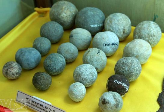Các viên đạn đá được thiết kế bởi nhà quân sự Hồ Nguyên Trừng dùng để phòng thủ.