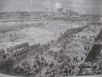 Hai bên đánh nhau đến tối, nhưng Pháp chỉ mới tiến được một cây số, còn hai cây số nữa mới đến được Đại đồn. Đêm đến, hai bên đều ngưng chiến. Năm giờ sáng hôm sau, quân Pháp tràn lên tấn công, xáp được gần Đại đồn. Song cách vách thành trăm thước thì gặp rất nhiều cạm bẫy, hào ụ, nên tiến rất chậm. Quân Pháp lúc này bị bắn chết và bị thương rất nhiều.