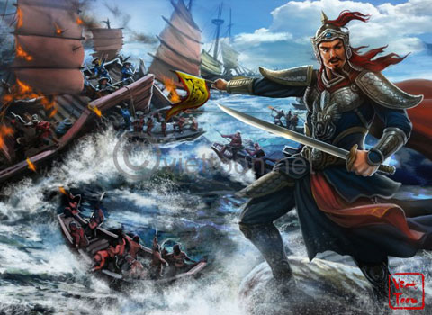 Thượng tướng Thái sư Trần Quang Khải đang điều quân tại trận thủy chiến lừng danh: Chương Dương. Y giáp dựa vào y giáp của Trần Hưng Đạo nhưng chọn vải cá để nhấn mạnh về cuộc thủy chiến quan trọng này.