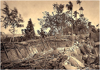~Lớp ngoài cùng gồm nhiều chiến lũy được dựng lên bằng những ụ đất và những cây tre. Ở phía bắc lợi dụng hai con đê quai quân Cờ Đen đã cho dựng nhiều chướng ngại vật.